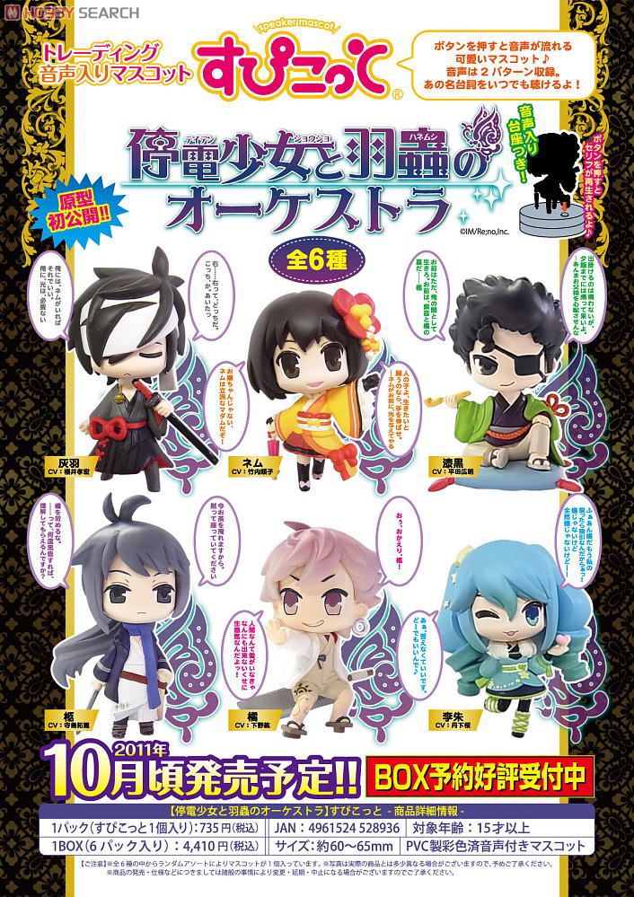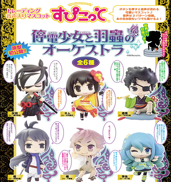 This is Teiden Shoujo to Hanemushi no Orchestra Voice Mascots Trading Figures which are voiced by their respective seiyuus in the series and sprouting some of the characters lines.