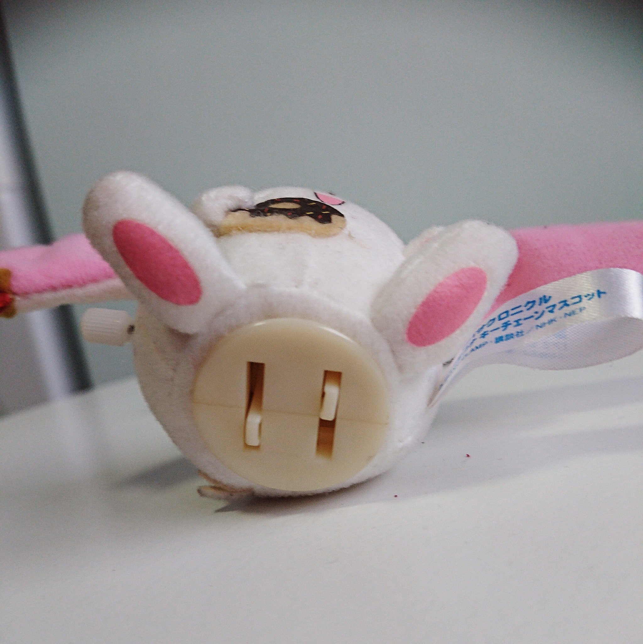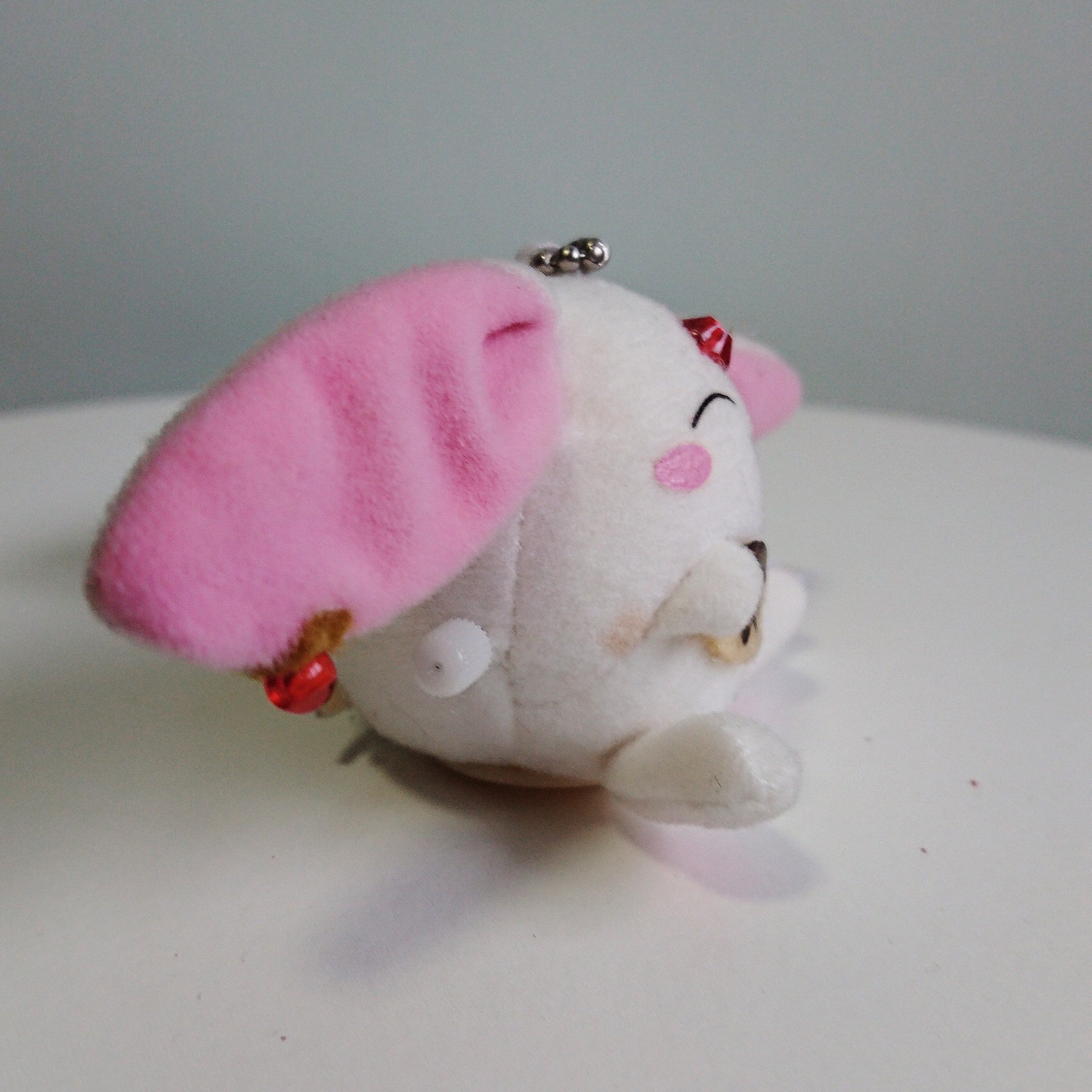 This is a Mokona Wind-up walking Plush Mascot Keychain from Tsubasa: Reservoir Chronicle & Card Captor Sakura. There is a wind-up mechanism you can turn that will propel the Mokona to walk.