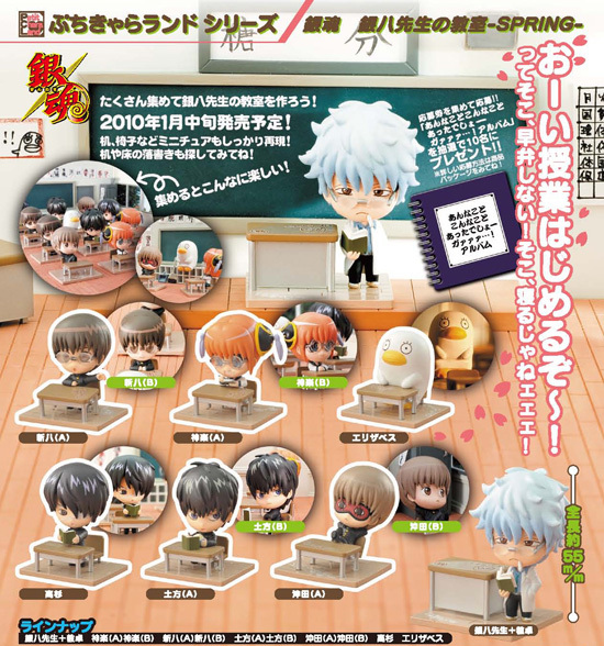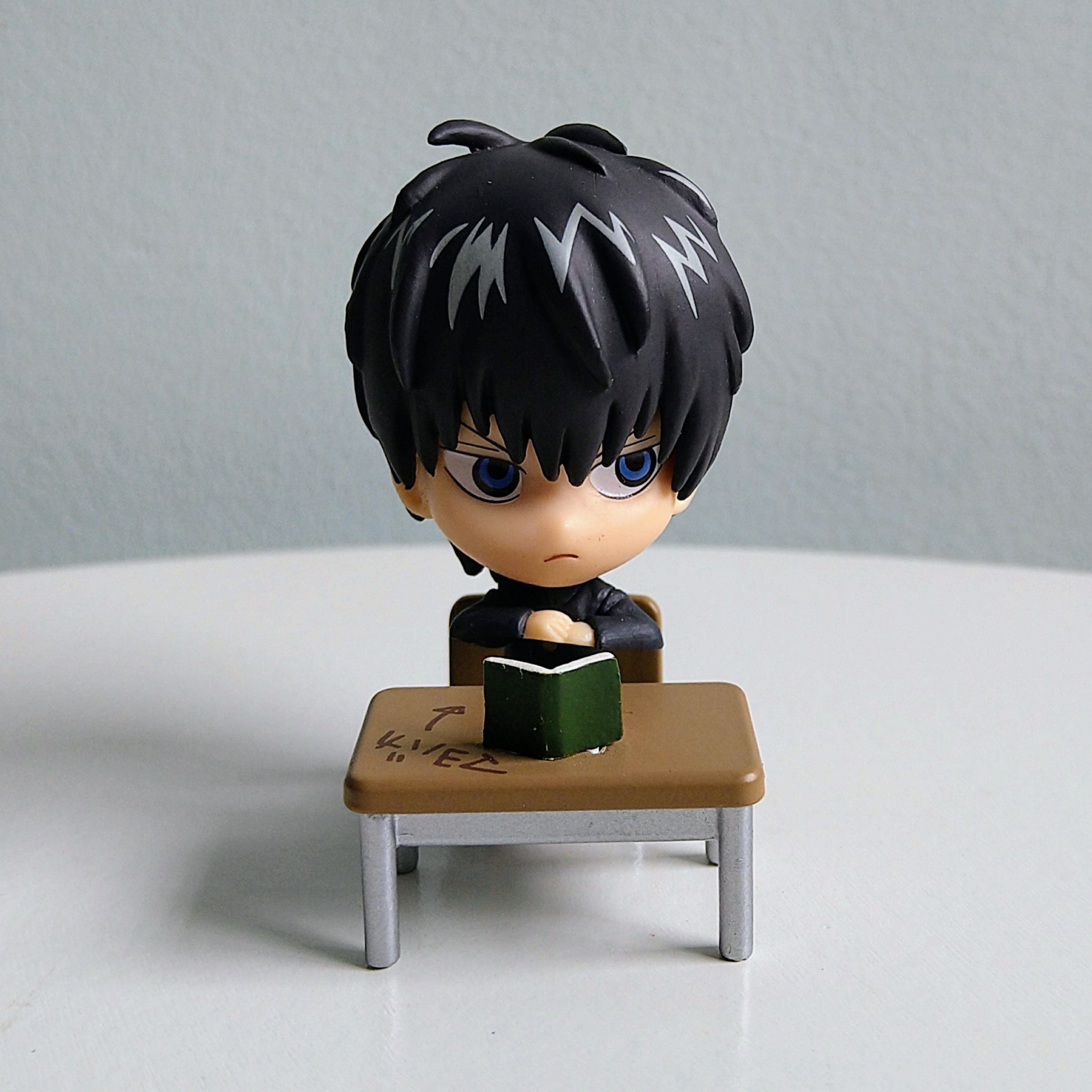This is a Gintama "Ginpachi-Sensei no Kyoushitsu ~SPRING~ Petit Chara Land " Trading Figure featuring Shinsengumi Vice-Captain Hijikata in the Ginpachi Sensei Class 3Z student version. Class 3-Z Hijikata student version is seated on a desk and you can see the words BAKA (idoit) scribbled on it (Pic 4)